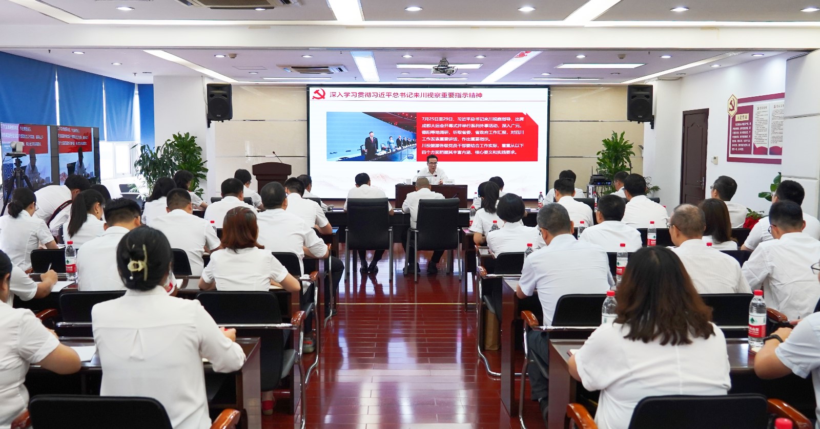 宣講報(bào)告會以“現(xiàn)場+視頻”形式召開,川投能源及所屬企業(yè)領(lǐng)導(dǎo)班子成員、中層以上管理人員、黨員代表共計(jì)170余人參會。