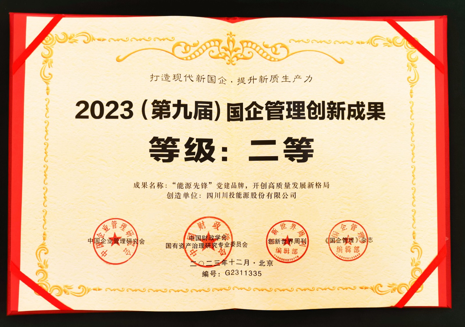川投能源黨建創(chuàng)新成果(案例)榮獲2023(第九屆)國(guó)企管理創(chuàng)新成果二等獎(jiǎng)2