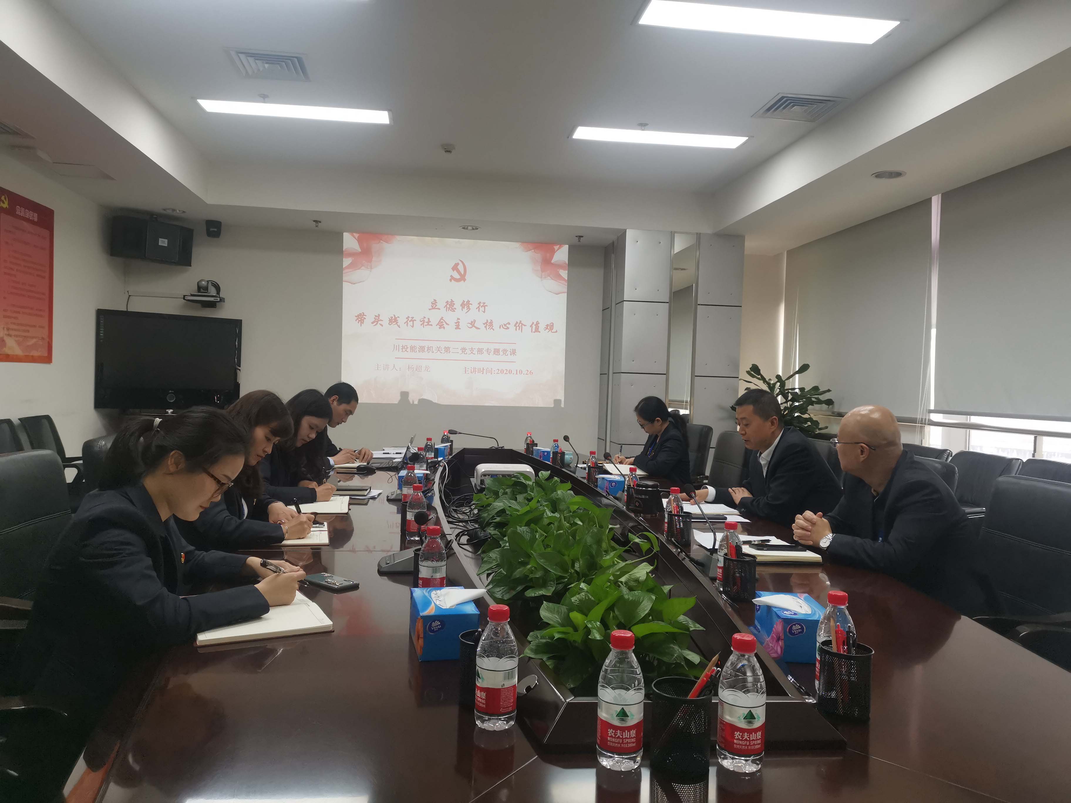 10月26日,川投能源機(jī)關(guān)第二黨支部召開黨員大會(huì),公司黨委副書記、工會(huì)主席楊超龍以《立德修行,帶頭踐行社會(huì)主義核心價(jià)值觀》為題,就社會(huì)主義核心價(jià)值觀的內(nèi)容、重要意義以及黨員干部如何踐行三個(gè)方面,結(jié)合理論與自身感悟,深入淺出地為二支部黨員講授了一堂精彩的黨課。